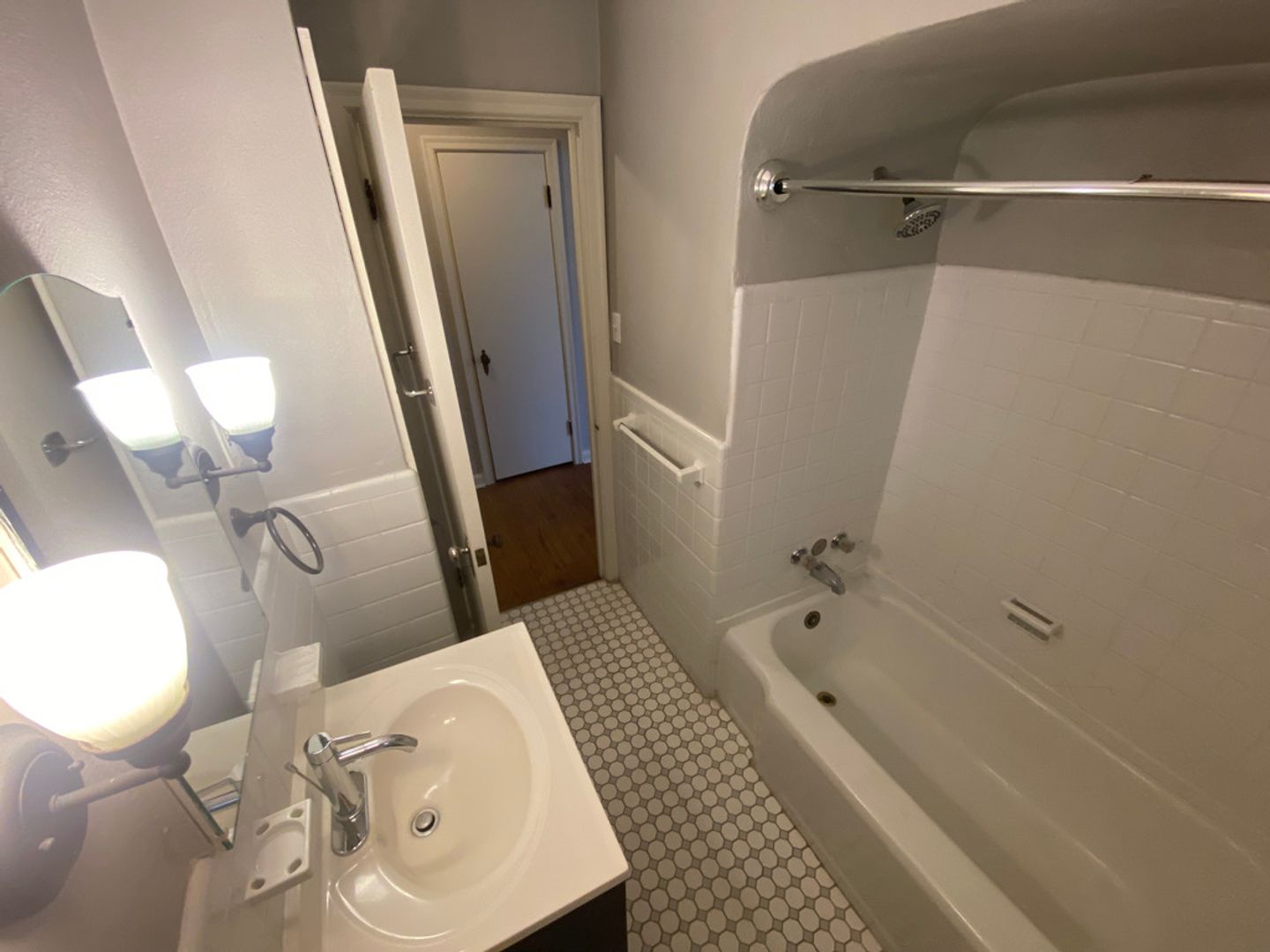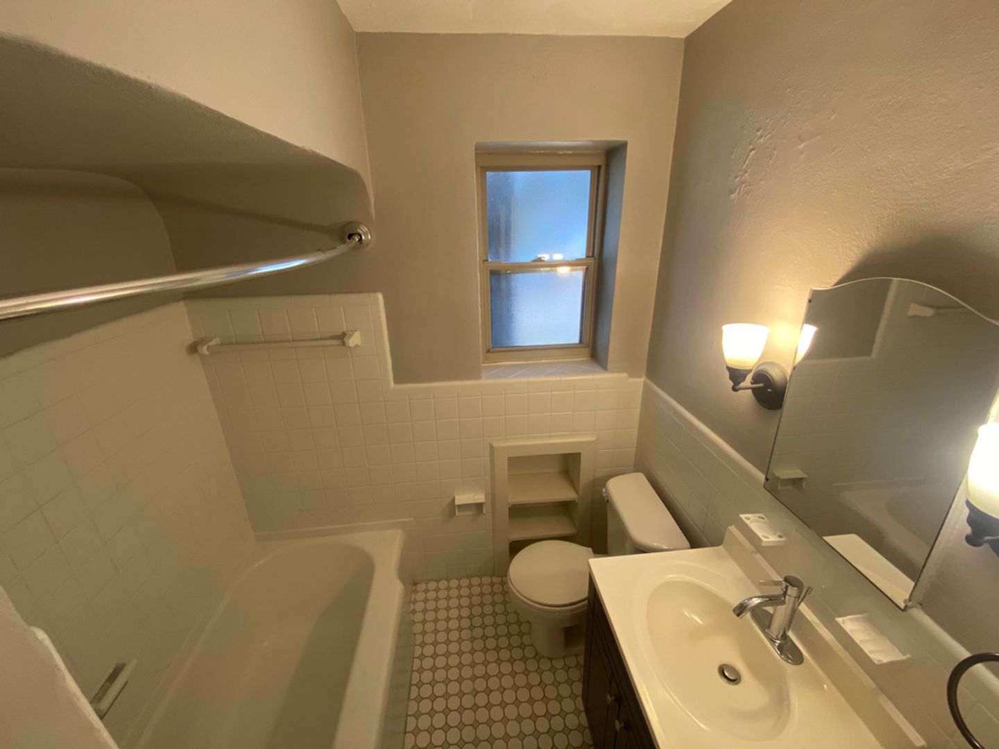 Large first-floor apartment with lots of natural light. Large living area, proper dining room, could make a great home-office space, large breakfast nook off of galley kitchen, two nice size bedrooms with lovely glass block detail and plenty of closet space. Updated bathroom. Newer windows. Ceiling fans in the bedrooms. First floor means easy in and out, not just for moving-in but for everyday.