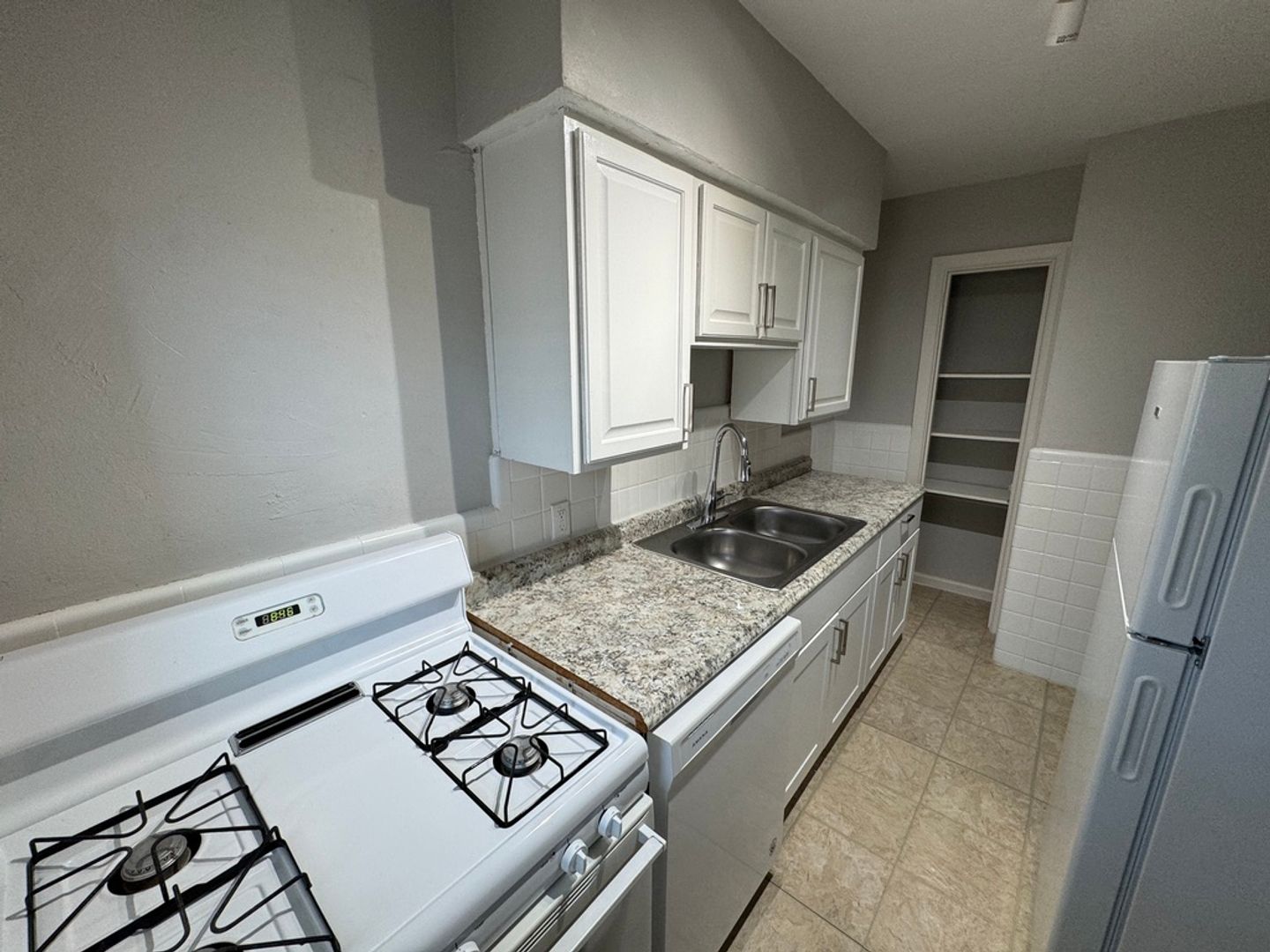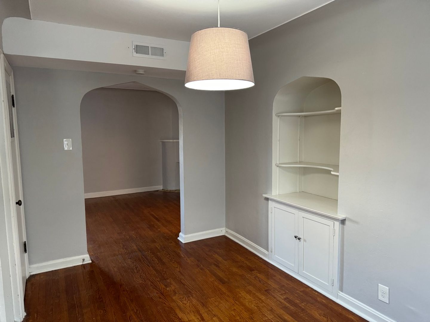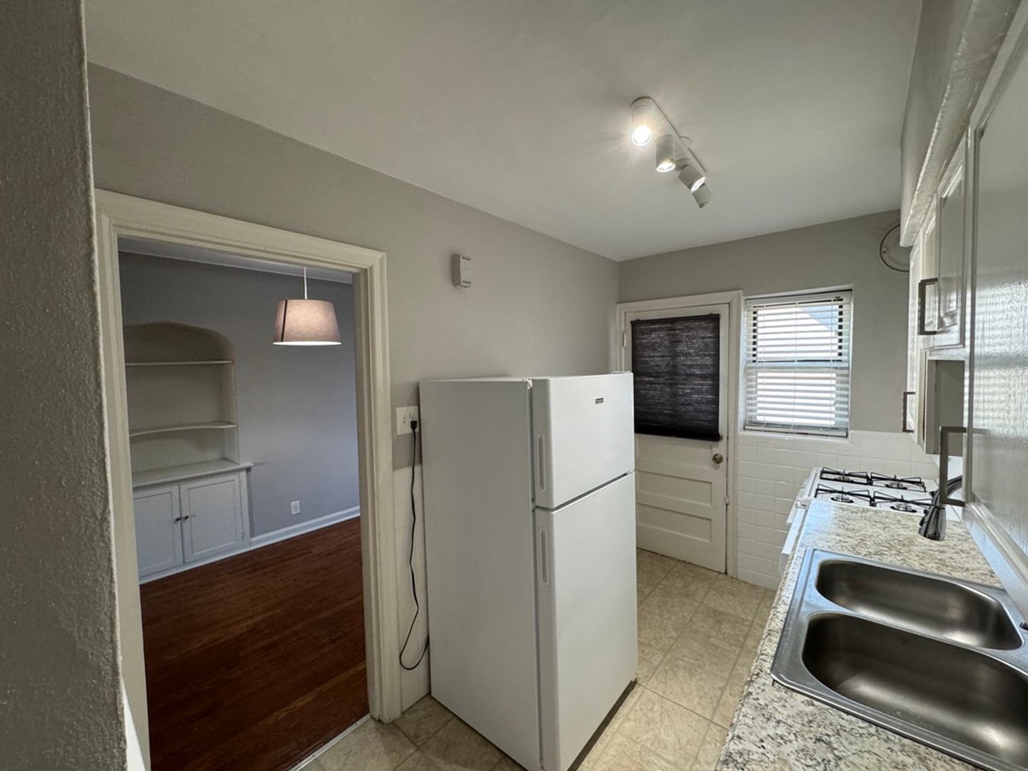 Lot's to like in this South City apartment: in the upgraded kitchen there are newer cabinets and counters, dishwasher, nice size sink with great water pressure, gas stove and full-size fridge. Also in the apartment central air and heat, double-pane windows, ceiling fan in the bedroom, spacious dining room with plenty of space for a desk or work-space.