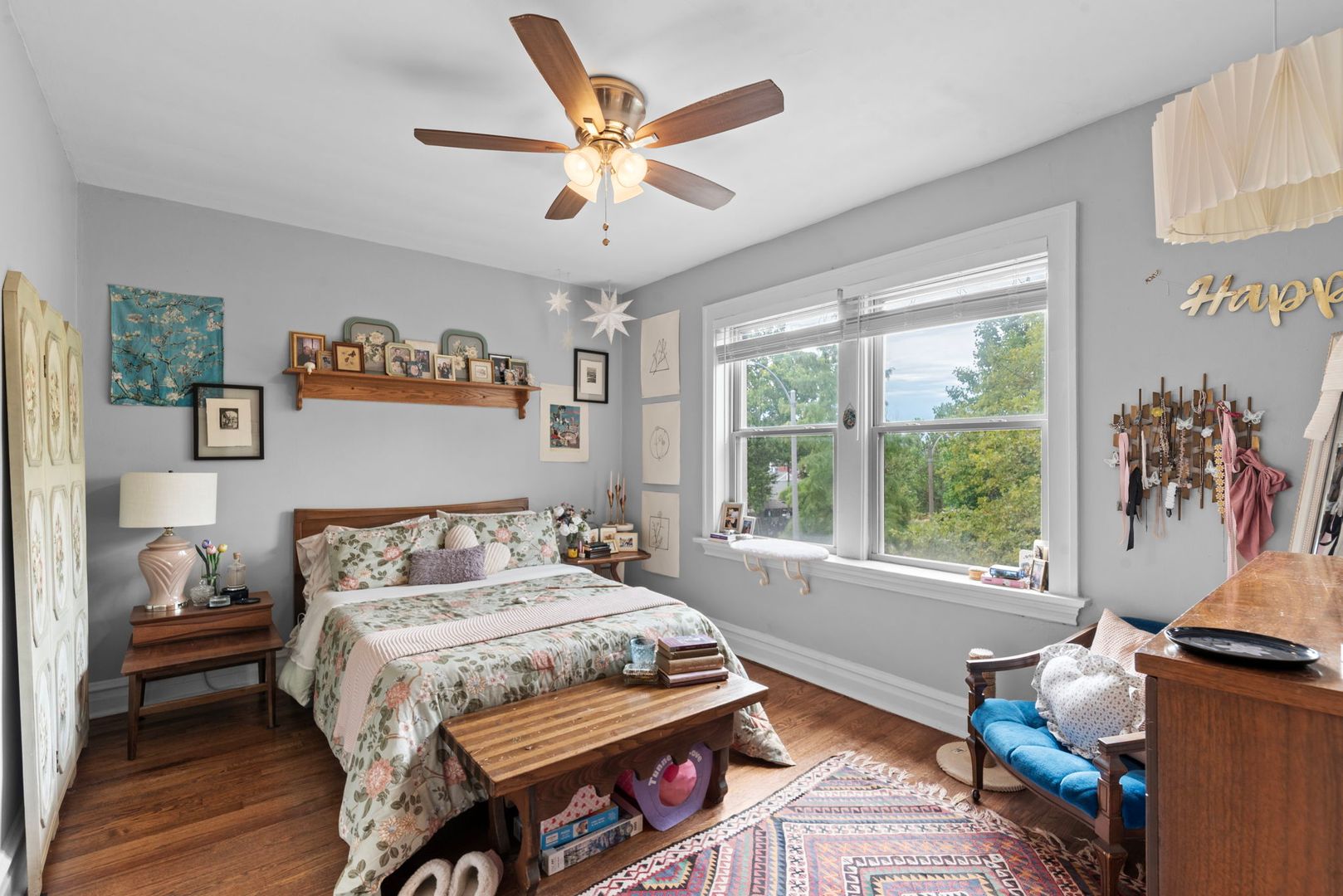 Lovely second floor unit is ready to go! On a quiet, South City corner this charming one bedroom apartment has all the classic draws like hard wood floors and large, newer south-facing windows for loads of light, plenty of in-unit storage, proper dining space that can serve as home-office, and modern amenities you would expect like central air, ceiling fans, PLUS - FREE laundry! in the well-lit and clean basement, along with extra storage, and a lovely fenced rear yard.